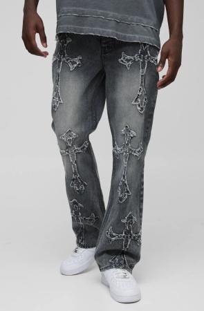 Slim-Fit Schlagjeans mit Kreuz-Stickerei - Grau - 28R, Grau