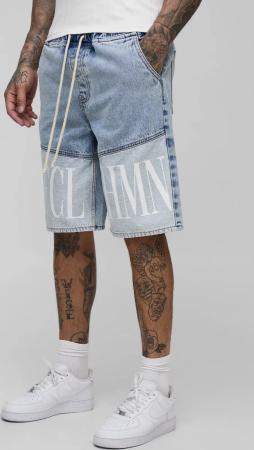 Tall gemusterte Colorblock Jeansshorts mit Kordelzug - Blau - S, Blau