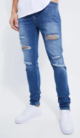Tall super zerrissene Skinny Jeans - mid wash - 34, mid wash