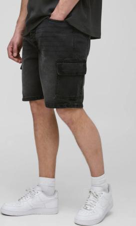Tall Slim Cargo-Jeansshorts - Schwarz - 38, Schwarz