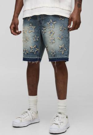 Tall Slim-Fit Jeansshorts mit Stern-Applikation - Blau - 34, Blau