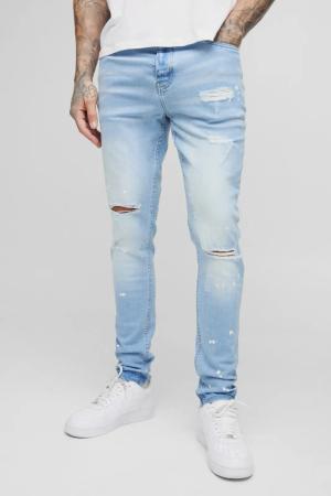 Tall zerrissene gebleichte Skinny Jeans mit Farbspritzern - Blau - 40, Blau