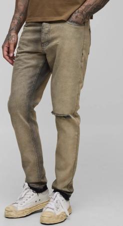 Tall zerrissene Slim-Fit Schlagjeans mit geteiltem Saum - Braun - 32, Braun