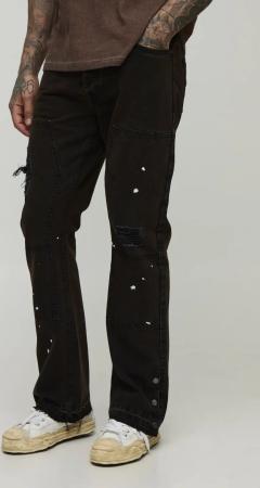 Skinny Stretch Jeans mit Rissen und Farbspritzern - Schwarz - 32R, Schwarz