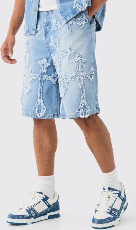 Zerrissene Jeansshorts mit Kreuz-Applikation - Blau - 32, Blau