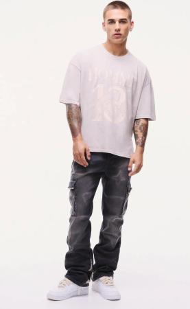 Lockere Cargo-Jeans mit Acid-Waschung - Grau - 30R, Grau