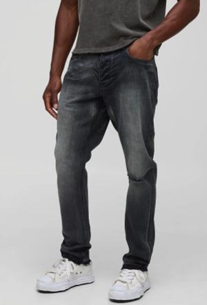 Tall zerrissene Slim-Fit Jeans - Schwarz - 36, Schwarz