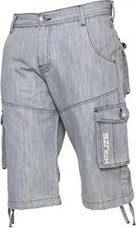 Herren Cargo Combat Shorts Heavy Duty Denim Half Pants Big King All Waists Gr. 30W, grau