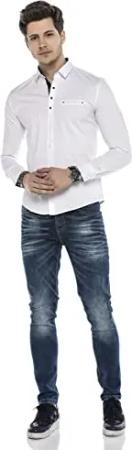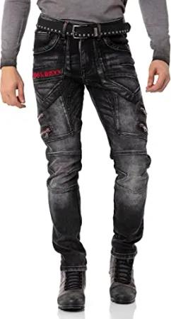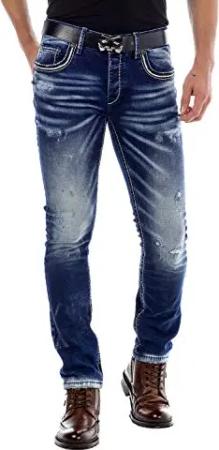 Herren CD529 Jeans Hose Straight Fit Waschung CD529 Blau Ziernähte Biker Hose Denim Design Blau