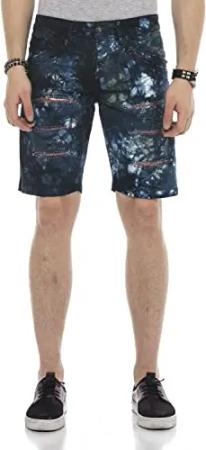 Herren Shorts Kurze Hose Bermuda Jeansshorts Capri Denim Destroyed Casual Batikwaschung CK205 Dunkelblau W34