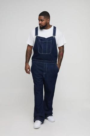 Plus Latzhose mit geradem Bein und Kontrast-Naht - Indigo - 44, Indigo