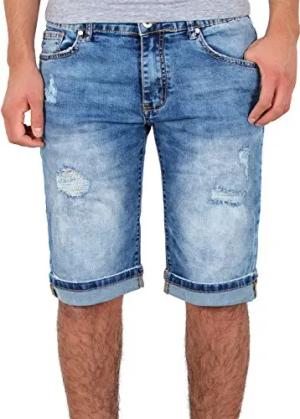 Jeans Shorts Herren Kurze Hosen Sommer l Used Look Destroyed Männer Denim Jeansshorts l Bermuda Capri Hose Regular Fit RS-2086 Mittelblau W33