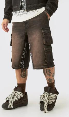 Braune Bestickte Cargo-Jorts - Brown - 30, Brown