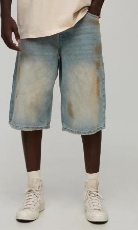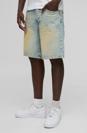 Tall Relaxed Fit Extreme Tinted Stonewash Longline Jorts - 34, Stonewash
