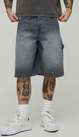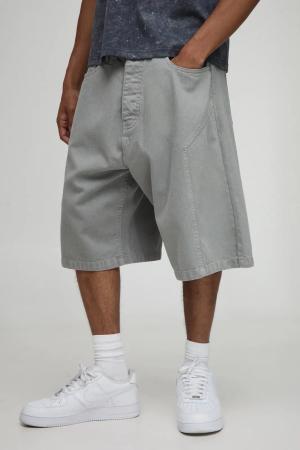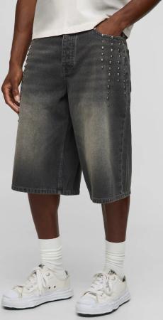 Studded Rigid Denim Longline Jorts - Grey - 32, Grey