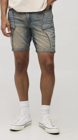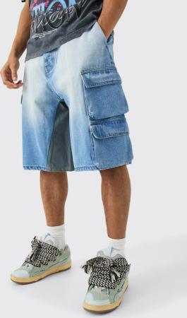 Lockere Strukturierte Cargo-Jeansshorts - Mid Blue - 32, Mid Blue