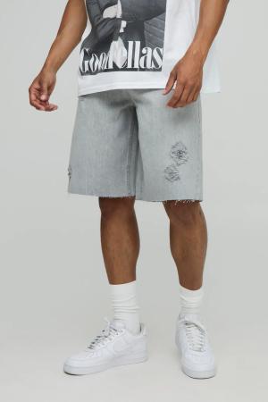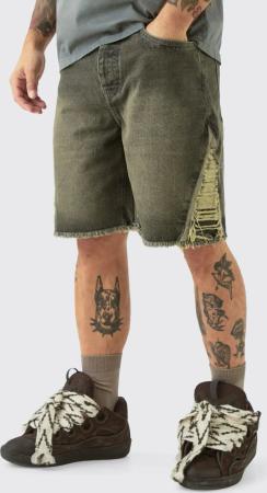 Lockere Jeansshorts Mit Extremen Rissen In Antik-Grau - Antique Wash - 32, Antique Wash