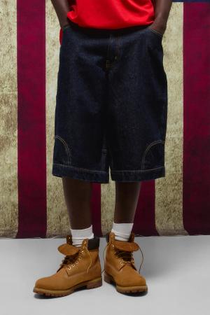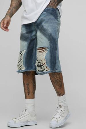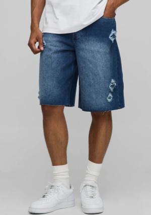 Longline Deconstructed Denim Jorts - Dark Indigo - 32, Dark Indigo