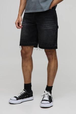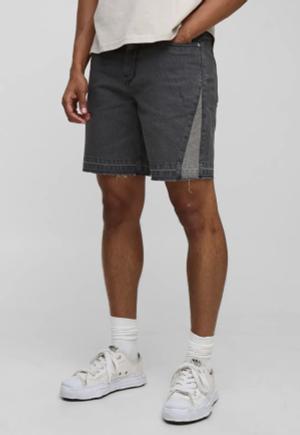 Straight Fit Washed Black Panelled Denim Shorts - 32, Washed Black