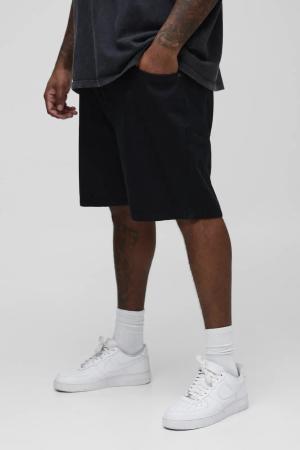 Plus Relaxed Fit Jorts With Pleat Waist Detail - Washed Black - 38, Washed Black