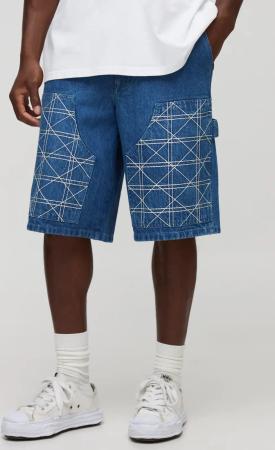 Regular Fit Panelled Embroidered Jorts - Vintage Blue - 30, Vintage Blue