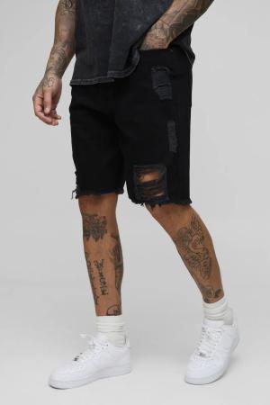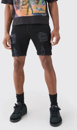 Schwarz Zerrissene Skinny Stretch Jeansshorts - True Black - 32, True Black