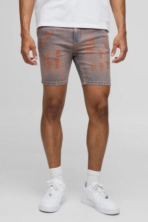 Skinny Stretch Ripped Tinted Denim Shorts - Peach - 32, Peach