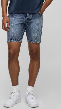 Straight Fit Vintage Washed Panelled Denim Shorts - Vintage Blue - 32, Vintage Blue
