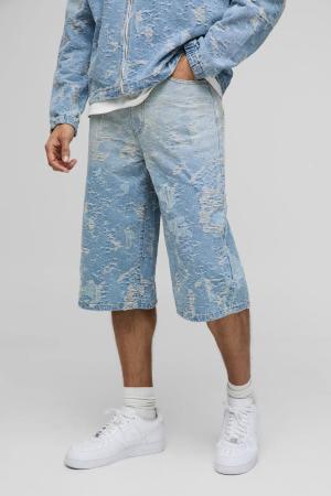Tall Relaxed Fit Paint Brushed Distressed Jorts - Antique Blue - 34, Antique Blue