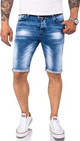 Herren Sweat Shorts Jeansshorts Denim Short Kurze Hose Herrenshorts Sommer Sweatshort Stretch Bermudas Hellblau RC-2200 Used Short W29