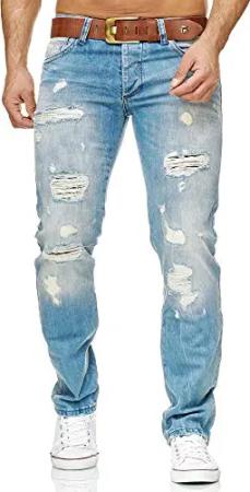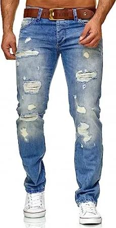 Jeans für Herren Hose Denim Pants Used Look Destroyed Blau W33L34