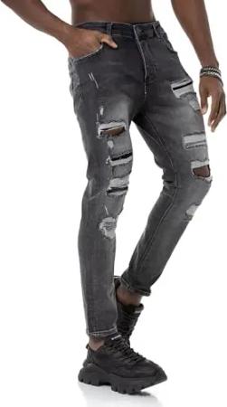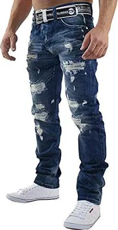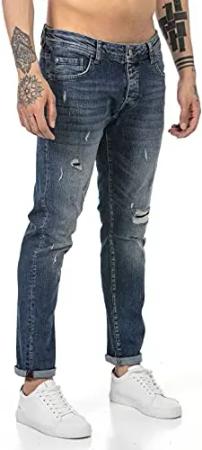 by Cipo & Baxx RB-162 Jeans Distressed Style Helle Waschung Herren Hose W33 L32 Dunkelblau