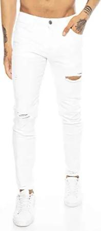 Herren Jeans Hose Slim-Fit Röhrenjeans Denim Destroyed M4235 Weiß W31L34