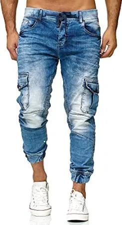 Herren Jogger Denim Jeanshose Cargo Hose Narrow Leg Jeans Blau W30 L34