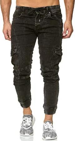 Herren Jogger Denim Jeanshose Cargo Hose Narrow Leg Jeans Schwarz W30 L34
