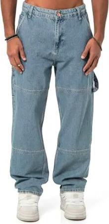 Baggy-Jeans – Weite Denim-Hose im 90er-Jahre-Look – Lässige Jeans für Freizeit und Streetwear Hellblau W36-L32