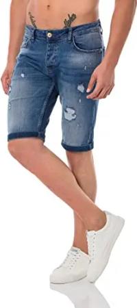 Red Bridge Herren Jeans Shorts Kurze Hose Denim Distressed Basic Blau W34