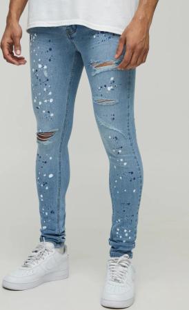 Super Skinny Jeans Mit Rissen & Farbspritzern - Light Blue - 34R, Light Blue