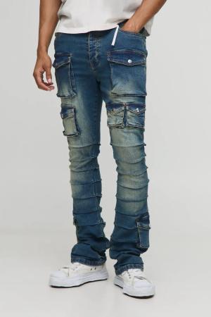 Skinny Schlagjeans mit Cargo-Taschen - Blau - 28R, Blau