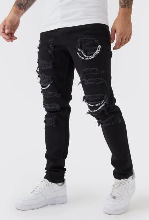 Super Skinny Stretch Bikerjeans mit Rissen - Schwarz - 32R, Schwarz