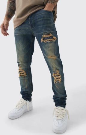 Skinny Stretch Rip & Repair Jeans mit Bandana-Print - Blau - 30R, Blau