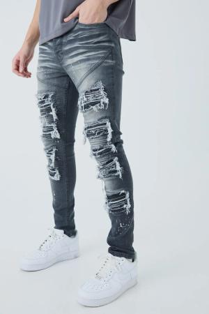 Super Skinny Bikerjeans mit Rissen und Farbspritzern - Grau - 34R, Grau