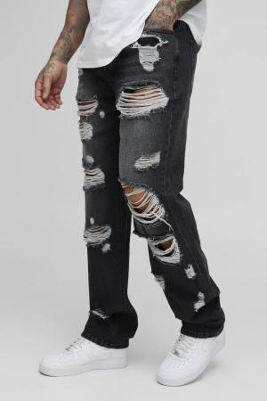 Tall zerrissene Jeans mit geradem Bein - Schwarz - 34, Schwarz