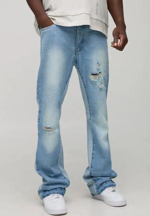 Zerrissene Slim-Fit Schlagjeans mit geteiltem Saum - Blau - 30R, Blau