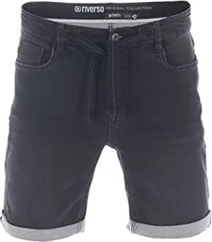 Jeans Shorts Herren Stretch Kurz Regular Fit RIVUdo Kurze Hosen Bermuda Shorts Sommer Denim Einfarbig, Größe:W 32, Farbe:Black Denim Stretch (B122)