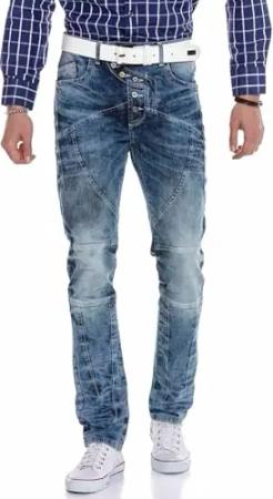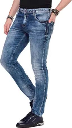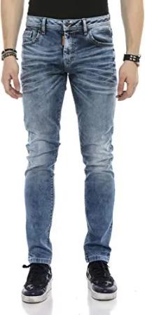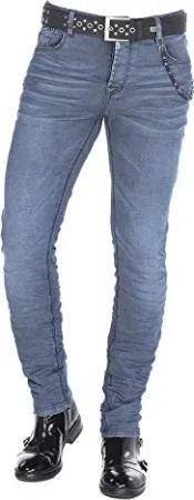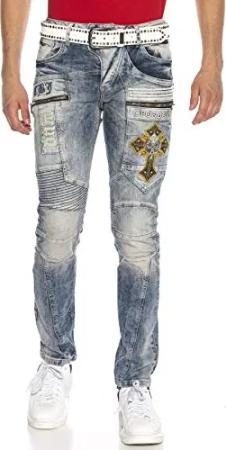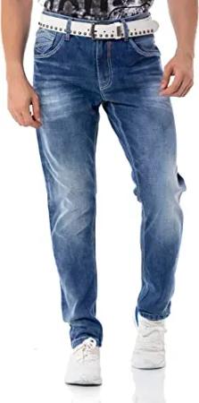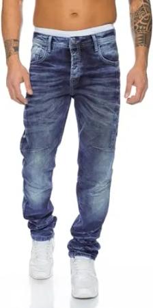 Herren CD529 Jeans Hose Straight Fit Waschung CD529 Blau Ziernähte Biker Hose Denim Design Blau