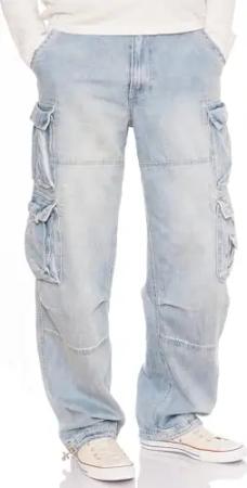 Herren Cargojeans 007 Relaxed Fit weites Bein, Farbe:Denim Bleached, Größe:4XL/34