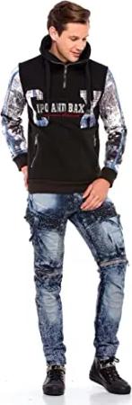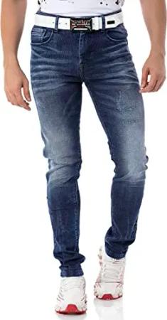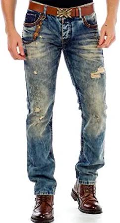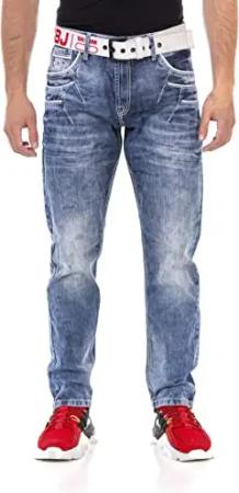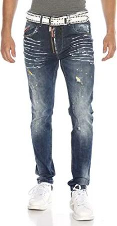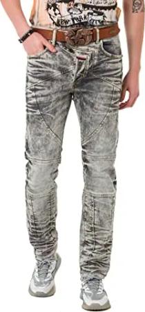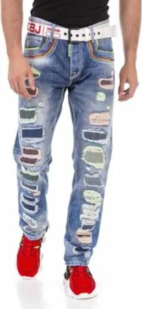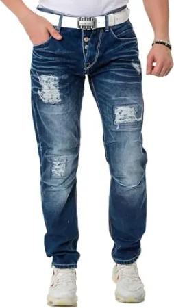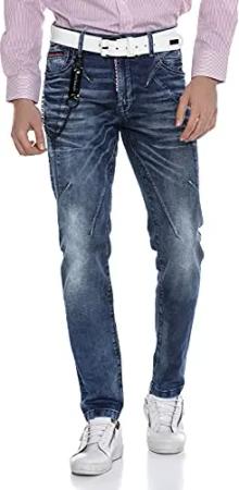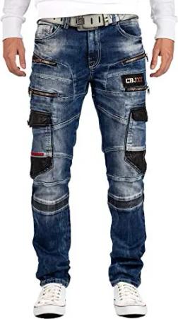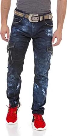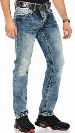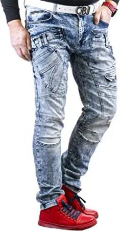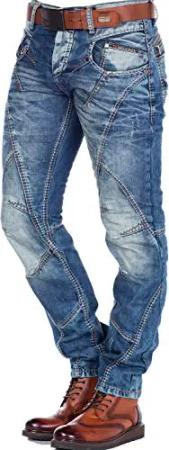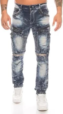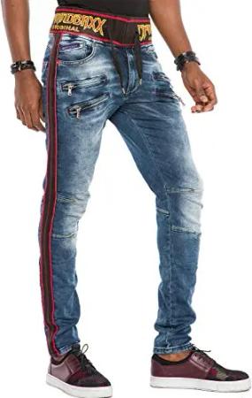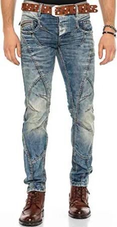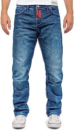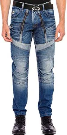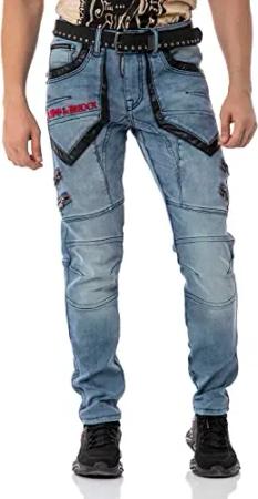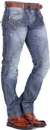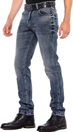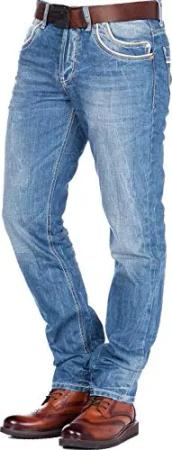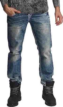 Herren CD529 Jeans Hose Straight Fit Waschung CD529 Blau Ziernähte Biker Hose Denim Design Blau