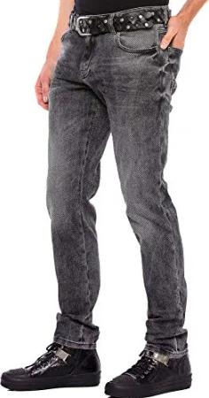 Herren Jeans Hose Rockig Nieten Straight Fit Denim Pants CD805 Grau W36-L32