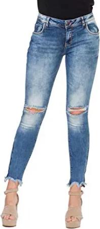 CIPO&BAXX Damen Jeans mit Frayed Legs und Zipper, Blau, 27W / 32L